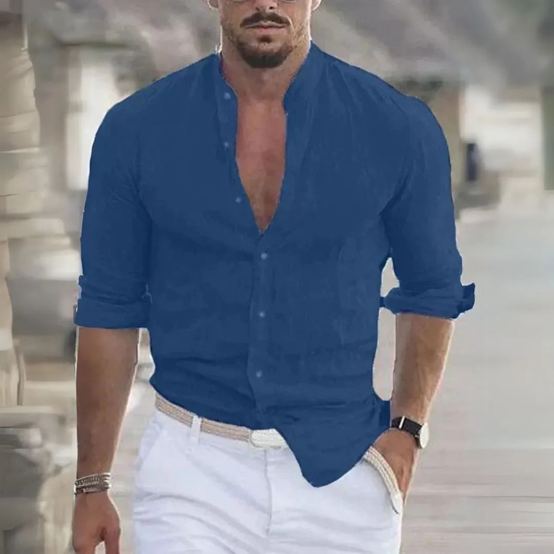Breeze through your day in this casual Marco Solid Button-Up Long Sleeves Shirt crafted for effortless style and all-day comfort. Featuring a laid-back silhouette with rolled sleeves and a button-down front, it’s perfect for warm-weather occasions, beach days, or casual nights out. The lightweight linen-blend fabric offers breathability and ease of movement, while the tailored cut keeps your look sharp yet relaxed.