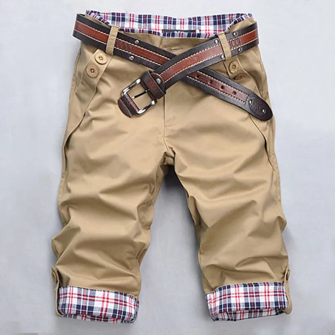 Make a statement with the Marc Plaid Cotton Blend Shorts crafted for comfort, casual style, and all-day versatility. With their plaid lining and contrast belt, these men's rolled-up capri shorts deliver summer-ready streetwear energy with a polished edge.