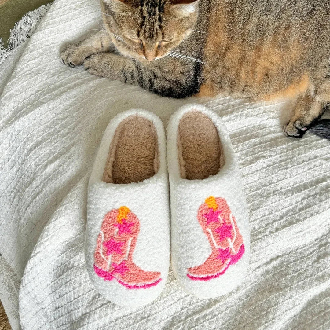 Bring a little western charm to your downtime with these ultra-cozy cowgirl boot slippers. Featuring a soft sherpa-style exterior, plush inner lining, and adorable pink embroidered boot detail, they keep your feet warm and comfortable.
