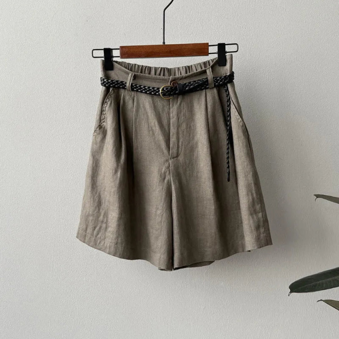 Kayla High-Waisted Belted Linen Shorts