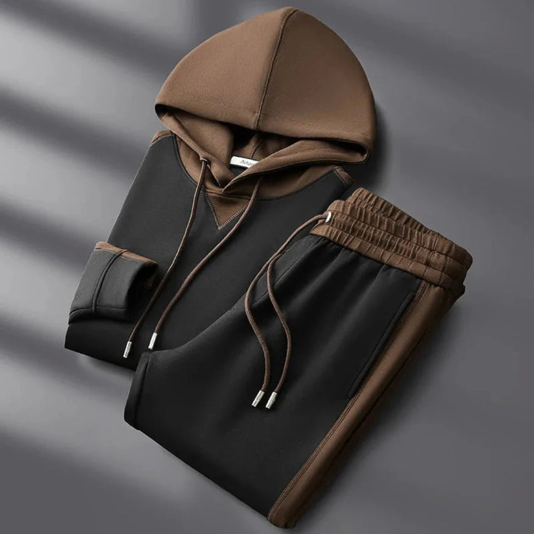 This set blends refined design with relaxed functionality. Crafted from 100% breathable cotton, it delivers comfort with structure—perfect for laid-back days or casual outings. The subtle two-tone contrast and tailored silhouette elevate its minimalist aesthetic for the modern man.